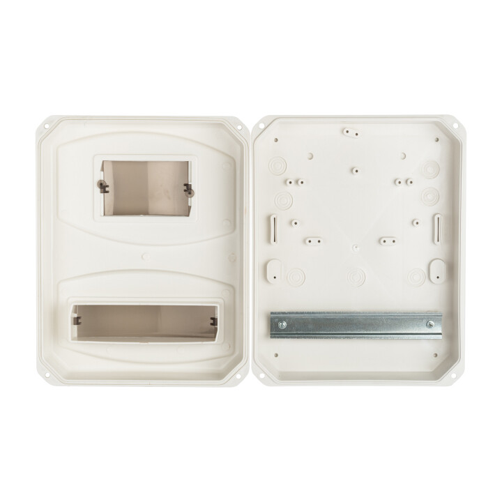 Щиты учетные пластиковые серии ЩУ-П предназначены для установки однофазного/трёхфазного счетчика и модульных аппаратов защиты. Возможность опломбировки счетчика позволяет использовать щит в частном секторе и дачном строительстве. Окошки из прозрачного пластика обеспечивают легкое и удобное считывание показателей электросчетчика, а также дают возможность контролировать текущее состояние аппарата защиты.