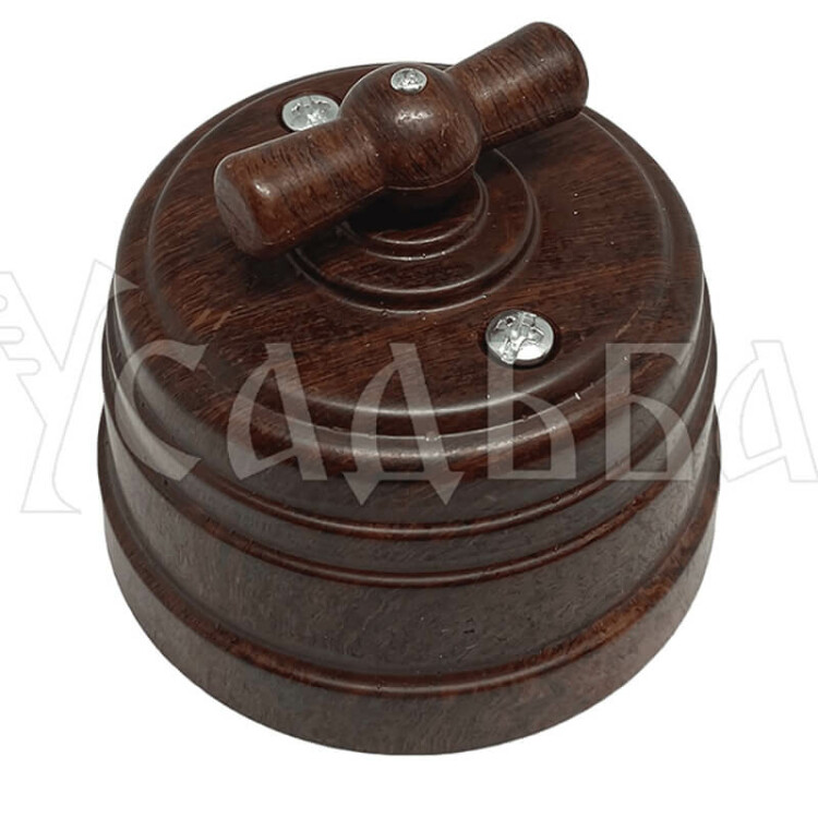 Выключатель пластиковый поворотный на четыре положения (2-х клавишный), IP 20, цвет - орех, серия УСАДЬБА, ТМ МЕЗОНИНЪ (кр. 1шт)