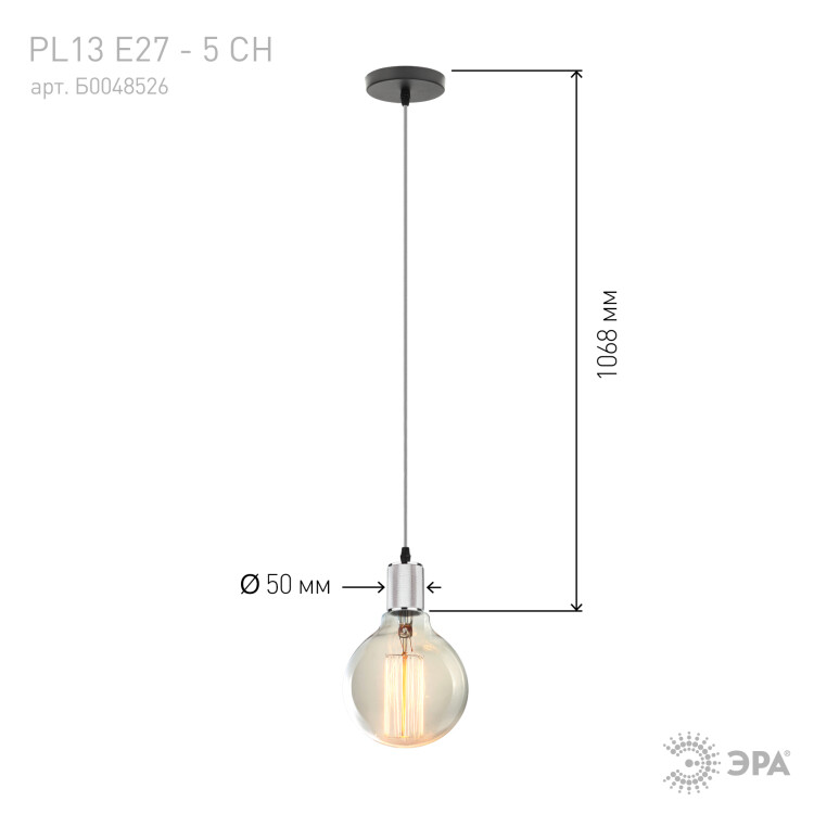 Светильник подвесной PL13 E27 - 5 CH является унив ерсальным источником света, легко монтируется и демонтируется в потолок. Создает неповторимый дизайн и уют в помещении. Подходит для спален, гостинной, столовой и других комнат. Цоколь для источника света E27, напряжение питания 220В ~50/60Гц, материал алюминий, цвет светильника хром, размер плафона H45*D64+1000 длинна провода, максимальная мощность лампы 50 Вт, степень защиты IP20