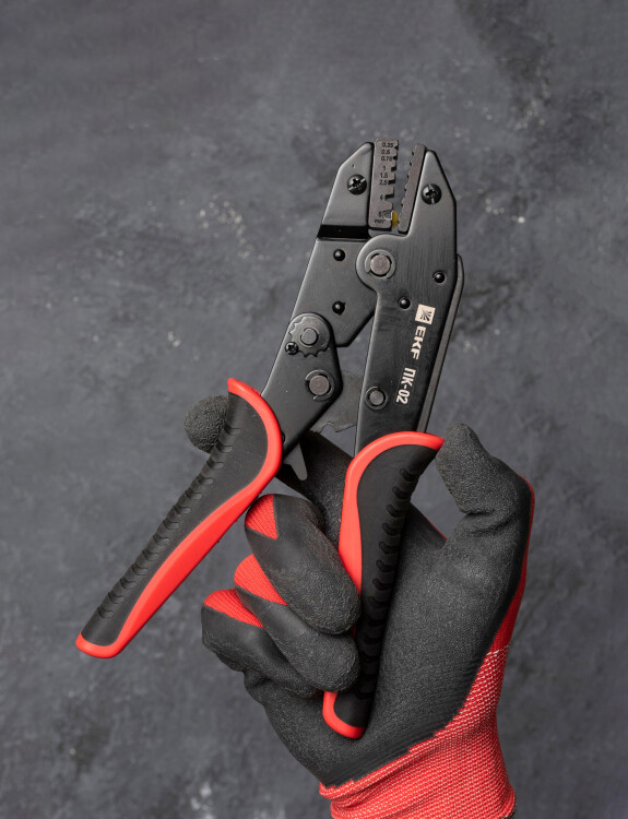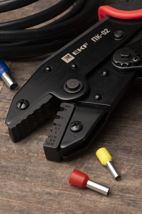 Пресс-клещи pk-02-exp предназначены для НШВ, НШВИ наконечников сечением 0,25-6 мм2. Инструмент оснащен храповым механизмом с автоматической разблокировкой по завершению цикла опрессовки. Каждая модель имеет маркировку, указывающую значение сечения используемого наконечника или разъема, а также нанесенную цветовую маркировку, соответствующую цвету изолирующей манжеты. Профиль опрессовки - трапеция.