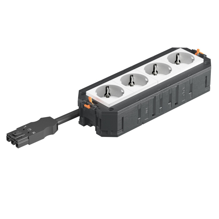 Готовый к подключению универсальный кронштейн UTC4 оснащен 4 розетками 33 с защитным контактом белого цвета, 250В 16A. Подходит для подключения соединительных проводов VL и монтажных элементов номинальных размеров R7, R9 и 9.Соединительный провод, ПВХ, со штекером, 3-полюсный, тип WINSTA MIDI.