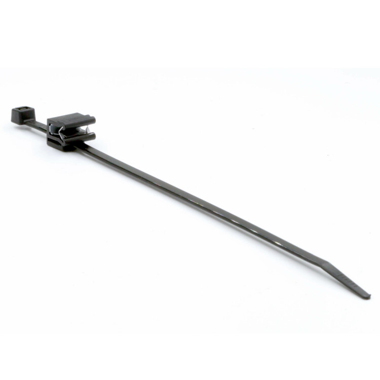 Клипса в комплекте может использоваться отдельно с хомутами другой длины шириной до 5 мм. Металлический держатель обеспечивает надежную фиксацию, а отсутствие необходимости сверления делает такие хомуты особенно востребованными в автомобильной промышленности. Размеры: ширина – 4,8 мм, длина – 200 мм, цвет – черный.