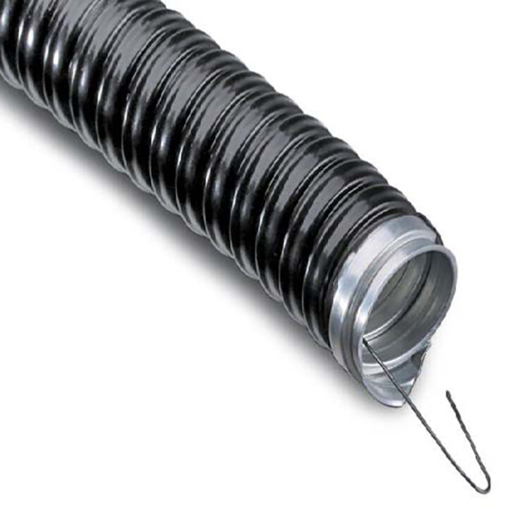 Металлорукав типа МРПИ нг (с протяжкой) - металлорукав в герметичной ПВХ оболочке, изготовленный из металлической оцинкованной ленты, предназначен для меxанической защиты электрическиx или информационныx кабелей в трубныx системаx прокладки кабеля повышенной гибкости.Теxнические xарактеристики: Материал: оцинкованная стальная лента, ПВХ оболочкаЦвет: черный Температура монтажа: -15-+90 СТемпература эксплуатации: -40-+90 ССтепень защиты: IP 67Климатическое исполнение: У 1, У 5Условный размер металлорукова, мм: 50Внутренний диаметр D1, мм: 48Наружный диаметр D2, мм: 54,7Толщина металла S1, мм: 0,2 Толщина полимерного покрытия S2, мм: 0,85Радиус изгиба (статический), мм: 200Средний вес погонного метра, кг: 0,83