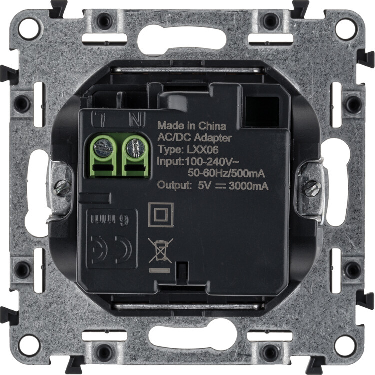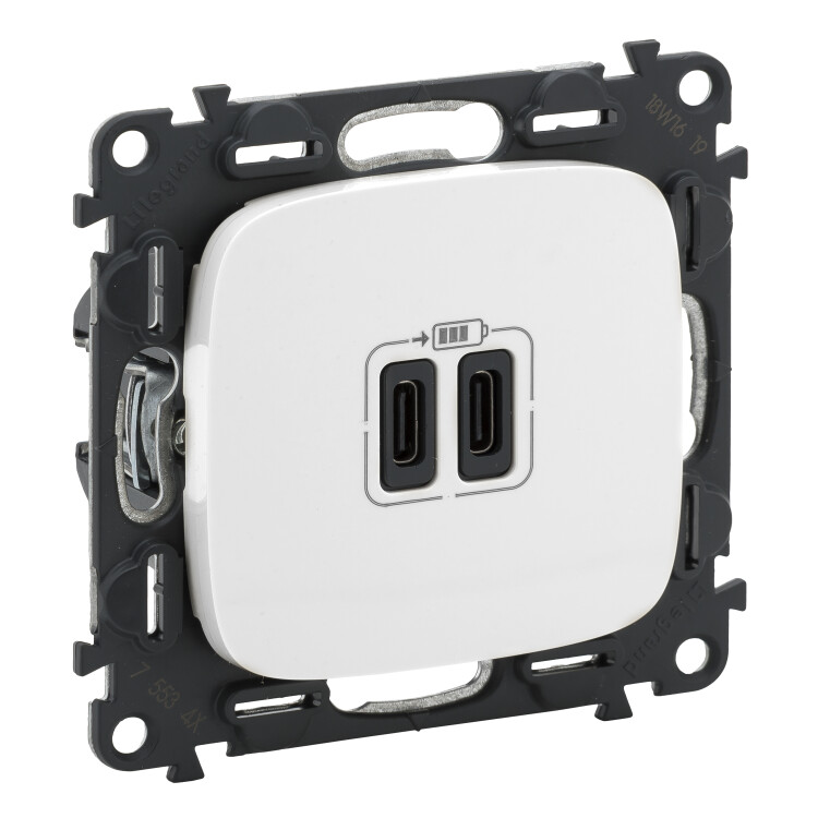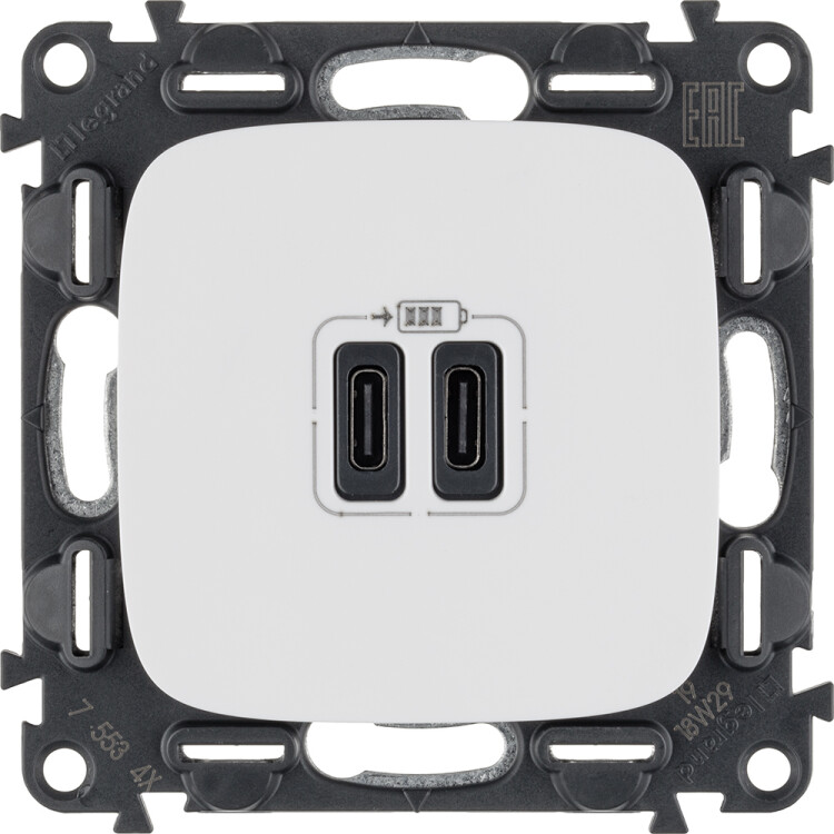 Valena ALLURE.Зарядное устройство с двумя USB-разьемами тип С-тип С 240В/5В 3000мА.С лицевой панелью.Цвет Белый