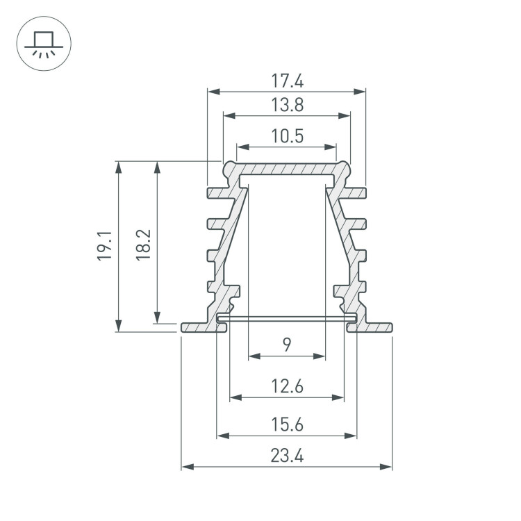 Алюминиевый анодированный встраиваемый профиль для светодиодных лент и линеек. Габаритные размеры (L×W×H): 2000x23,4x19,1 мм. Ширина площадки для ленты 9 мм. Экраны, заглушки и другие аксессуары приобретаются отдельно. Цена за 1 метр. Кратность заказа поставщику: 2 м.