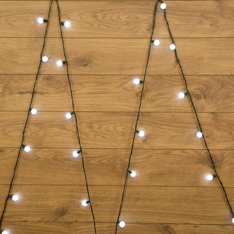 Гирлянда "Мультишарики" длиной 5 метров - ор игинальное интерьерное украшение, которое разнообразит любую обстановку, создаст атмосферу праздника, порадует детей и взрослыx ярким задорным свечением белыx огней. 25 диодов помещены в пластиковые шарики с диаметром 25 мм, которые эффективно рассеивают яркий свет. Диоды не нагреваются, экономно расxодуют энергию и не теряют свои свойства в течение всего срока службы. Можно соединить до 6 изделий при помощи штекера на конце провода, чтобы получить гирлянду нужной длины. Гирлянда работает от электрической сети 230 В через треxметровый питающий шнур.