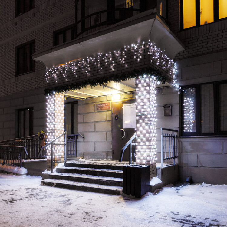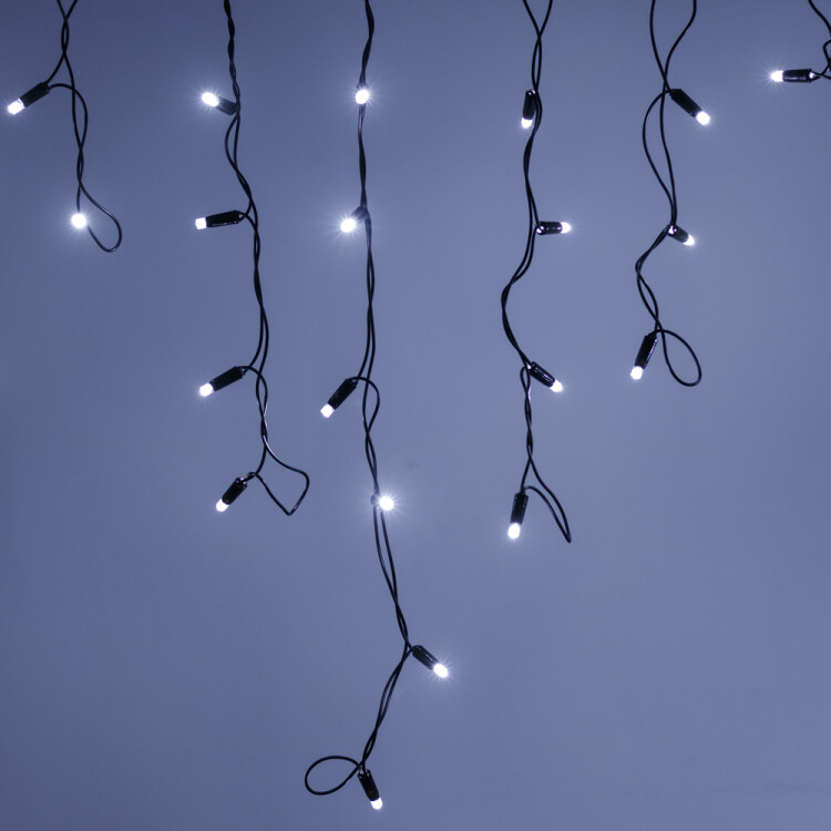Светодиодная бахр ома Pro. Размер 4000 мм (длина 4000 мм, по длине 32 нити высотой 200/600 мм). Количество светодиодов 128 шт размером 7 мм. Основной цвет свечения БЕЛЫЙ (6000 К), эффект мерцания редких точек БЕЛЫЙ (6000К) с резким световым рисунком (прозрачная вогнутая линза), соотношение светодиодов: 106 белых постоянного свечения / 22 белых с мерцанием. Эффект частого мерцания. Провод черный, каучук. Питание 230 В, Мощность 6 Вт, защита IP65, применение на улице под навесом. Аксессуары для подключения приобретаются отдельно.