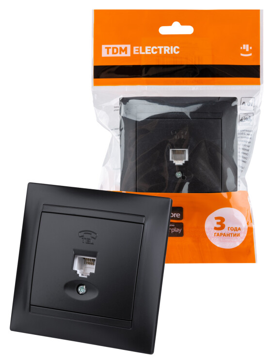 Розетка телефонная RJ11 графит "Лама" TDM (кр.10шт)