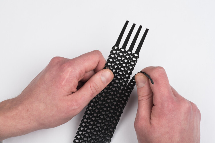 Хомуты гибкие многоразовые FlexSTRAP используются во многих отраслях промышленности, быту и садоводстве. Эластичная стяжка длиной 300 мм и шириной 10 мм предназначена для вязки кабелей и проводов в жгуты. При помощи одной стяжки можно сделать несколько бандажей, обычно это 3–5 бандажей. Если требуется обхватить пучок большего диаметра, то можно просто соединить две стяжки в длину.