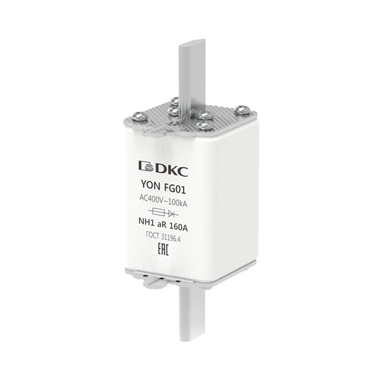 Предохранитель YON ножевого типа FG1 с одинарной индикацией 160А предназначен для защиты полупроводников и электронных компонентов электроустановки от короткого замыкания в цепях переменного тока напряжением до 400В (характеристика aR).