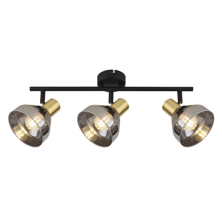 Спот поворотный Rivoli Kinge (арт. 7036-703) под 3 лампы Е14 40 Вт. Изготовлен из металла и стекла. Позволяет регулировать направление каждого источника света, помогает зонировать пространство и организовать дополнительную подсветку. Настенно-потолочные светильники Kinge от итальянского бренда Rivoli имеют эффектный дизайн. Металлический корпус окрашен в модные цвета - латунь и черный. Стекло плафонов тонировано в красивый дымчатый оттенок и покрыто глянцем. Арматура спота потолочного Kinge прочная, выверенная и лаконичная. Размер - 455*80*160 мм.