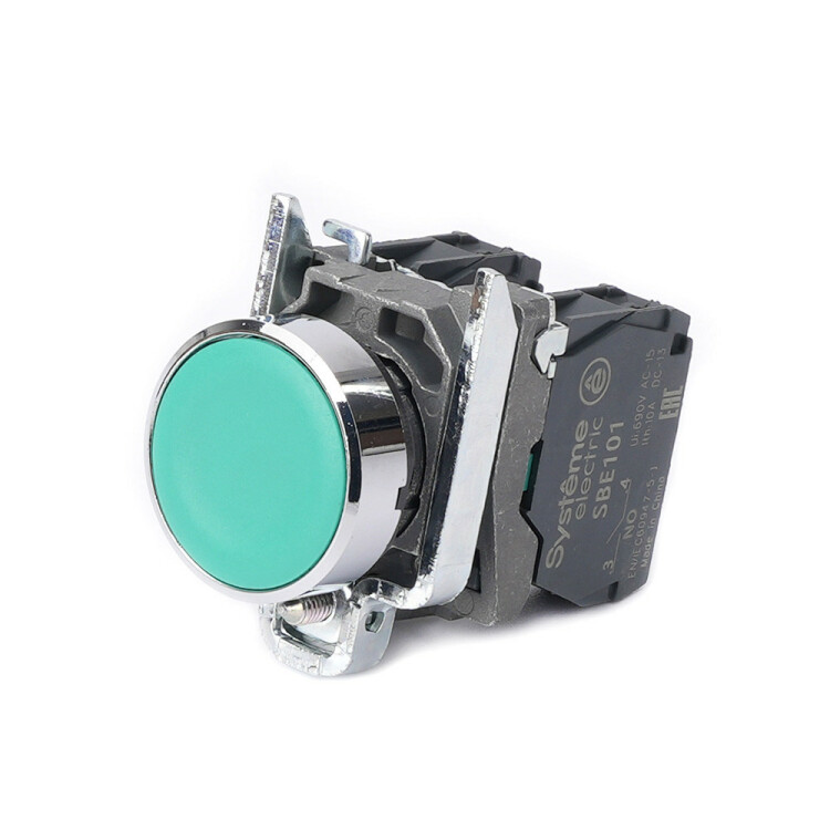 Кнопка сериии SB4 в сборе, модульная, для монтажа в отверстия диаметром 22мм, зеленая, с возвратом, в металлическом корпусе. Количество контактов: 1НО+1НЗ. Устройства управления и сигнализации SystemeSig находят широкое применение в технологическом оборудовании и машинах, шкафах распределения и управления, промышленных предприятиях, объектах инфраструктуры, гражданском строительстве (ранее Schneider Electric Harmony XB4 XB4BA35).