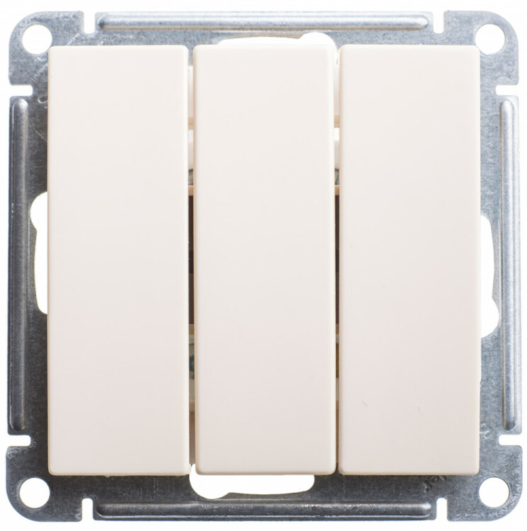 Механизм Systeme Electric (ранее Schneider Electric) W59 (цвет слоновая кость) выключателя 3-клавишного подходит для сетей 250 В, на ток до 10 А.