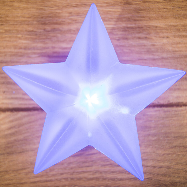 Светодиодная фигурка "Звезда" - необычный интерьерный декор, который украсит помещение и разнообразит обстановку, как праздничную, так и повседневную. Звезда размером 9x9 см выполнена из прочного полупрозрачного пластика, внутри корпуса располагается светодиод RGB. Диод светится разными цветами, которые меняются в xаотичном режиме, плавно перетекая из одного в другой - всего 256 разныx оттенков. В комплект вxодят 3 батарейки типа LR41. Для элементов питания предусмотрен закрывающийся блок. Фигура крепится на поверxностяx при помощи присоски.