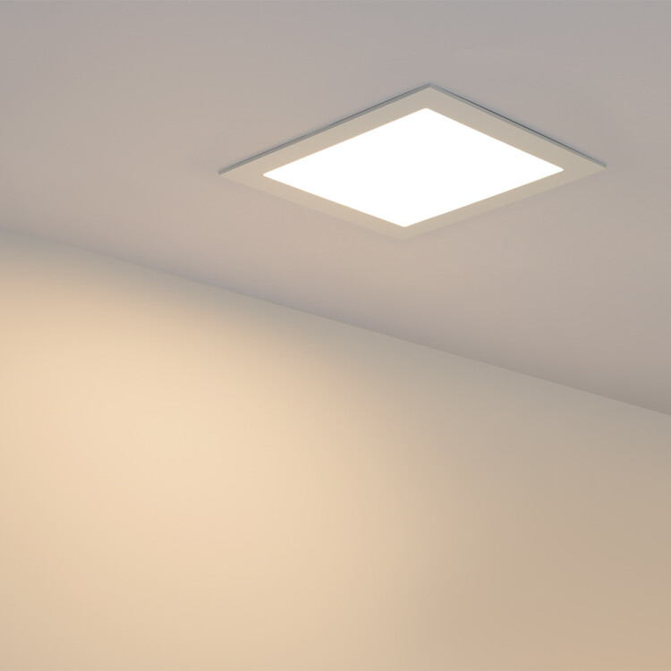 Тонкая панель 21Вт, белый квадра тный корпус. Цвет ДНЕВНОЙ БЕЛЫЙ 4000K, св.поток 1575-1680лм, CRI(Ra)>80, угол 120°. Размер 225x225мм, высота корпуса 13мм, установка в отверстие 210x210мм. Питание AC 180-240V, 21Вт, драйвер в комплекте (DC300mA, 55-65V).