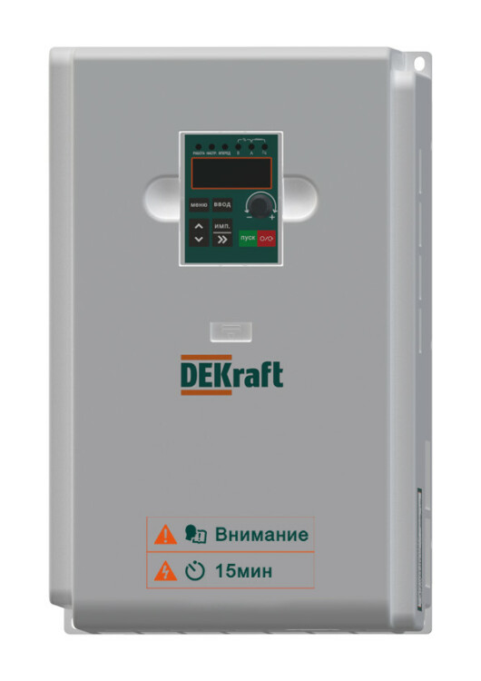 Преобразователи частоты ПЧ-510; Входное напряжение 380В 3 фазы; IP 20; тормозной модуль; Тяжёлый режим работы Рдв. - 15 кВт; Частотные преобразователи DEKraft представляют широкий спектр полностью протестированых и готовых к подключению решений для управления электродвигателями.