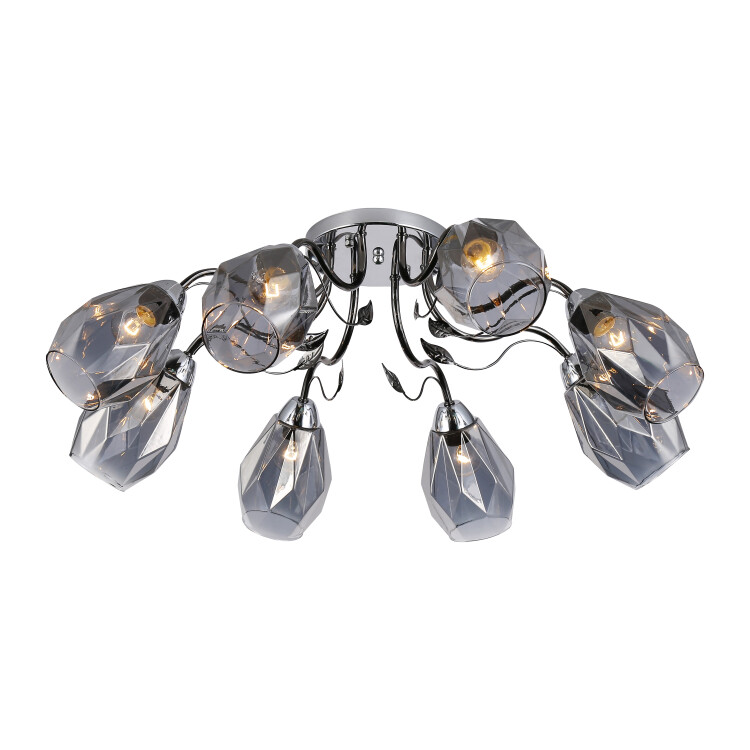 Большая серо-дымчатая люстра с 8 плафонами от итальянского бренда Rivoli - арт. 9103-308. Освещает площадь 24 м² и запоминается своим дизайном. Стойкое гальваническое окрашивание люстры выполнено в актуальном цвете "черный жемчуг". С этим красивым оттенком гармонично сочетается дымчатое стекло плафонов люстры. Тонированные плафоны хорошо смягчают яркий световой поток, освещение в комнате будет комфортным для глаз, вы сможете расслабиться и отдохнуть даже при искусственном свете. Рекомендуем купить для данной люстры на потолок лампы Е27 60 Вт. Размер - 760*760*260 мм. Несмотря на довольно большие габариты, эта люстра потолочная аккуратно смотрится в комнате благодаря утонченной арматуре и плавным линиям корпуса.