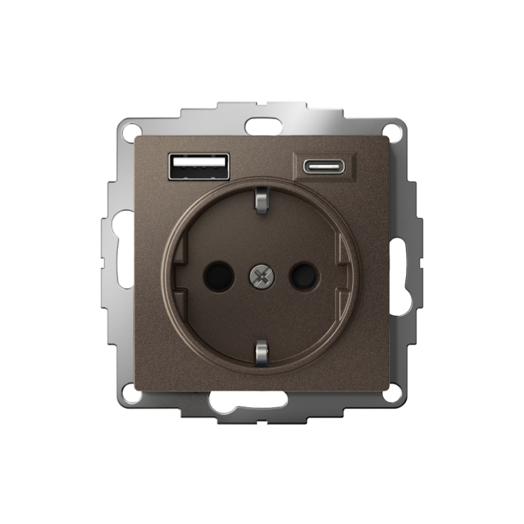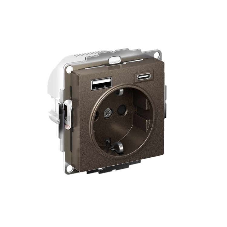 Розетка силовая Systeme Electric (ранее Schneider Electric) серии AtlasDesign 16А в цвете мокко с заземлением и шторками с ро зеткой USB с двумя разъемами тип А и тип С. Розетка совмещает в себе сразу 3 функции в одном изделии. Удобное и современное решение для дома, офиса и других помещений. Лицевые детали из качественного ABS-пластика, устойчивого к царапинам и УФ-излучению. Заземляющий контакт обеспечивает дополнительную защиту от удара электрическим током. Шторки обеспечивают дополнительную безопасность в доме, где находятся дети. Одно устройство позволяет как подключить бытовые приборы, так и зарядить мобильные устройства.