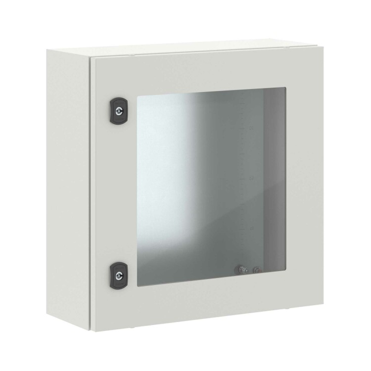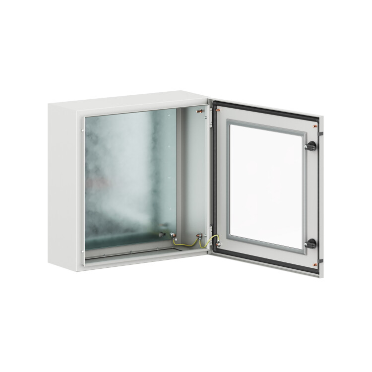 Навесные корпуса STEX предназначены для систем автоматизации и распределения электроэнергии. Корпус, дверь, фланец STEX изготавливаются из стали толщиной 1,5 мм с атмосферостойким порошковым покрытием, цвет RAL7035. Монтажная плата - из оцинкованной стали 1,8 мм. Безопасное закаленное стекло толщиной 5 мм. Корпуса выполнены по технологии сварки из единого листа металла, что обеспечивает высокую нагрузочную способность и защиту от вибраций. Степень защиты IP66, ударопрочность IK10, сейсмостойкость 9 баллов по шкале MSK-64, климатическое исполнение УХЛ1, ОМ2, ОМ3, группа горючести Г1. Комплект поставки: корпус, дверь реверсивная, монтажная плата, дверные рейки, поворотный замок 2 шт., сплошной фланец для ввода кабеля 1 шт., комплект заземления с проводами заземления. Габариты 500x500x200 (ШхВхГ) мм.