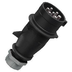 32A, 7п, 7ч, 500B, 50-60Гц. Вилка кабельная, литой корпус, винтовые клеммы, термостойкие держатели контактов, никелированные контакты, герметичный кабельный ввод, защита от перегибов и натяжения кабеля, сечение кабеля 2,5 - 6 кв.мм, серия AM-TOP, черная, IP44.