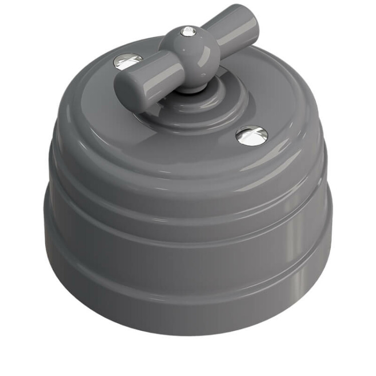 Выключатель пластиковый поворотный на два положения, для включения из 2-х мест (1-клавишный проходной), IP 20, цвет - серый, серия УСАДЬБА, ТМ МЕЗОНИНЪ (кр. 1шт)