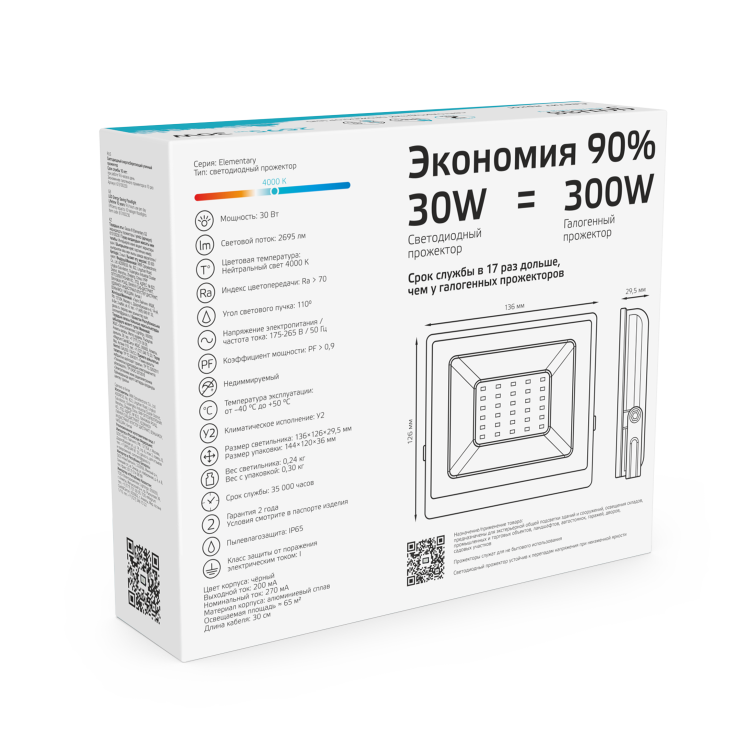 Корпус прожектора Qplus Elementary изготовлен из прочного литого алюминия, рассеиватель выполнен из прозрачного закаленного стекла. Экономичная LED технология сокращает до 90% затрат на электроэнергию.