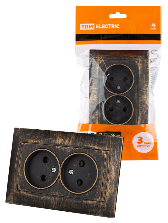 Розетка двойная 2П 10А 250В с защ. шт. старинная бронза "Лама" TDM (кр.7шт)
