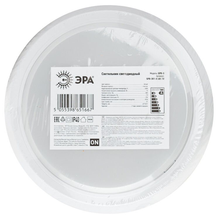 Светильник ЖКХ светодиодный ЭРА SPB-301-0-4K-10 IP20 10Вт 4000К(кр.1шт)