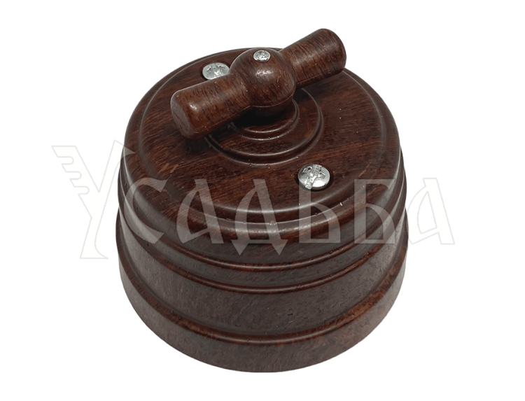 Выключатель пластиковый поворотный на два положения, для включения из 2-х мест (1-клавишный проходной), IP 20, цвет - орех, серия УСАДЬБА, ТМ МЕЗОНИНЪ (кр. 1шт)
