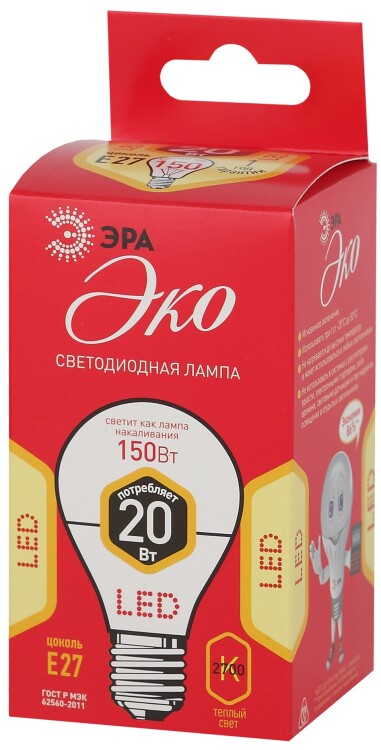 Бытовая светодиодная лампа ЭРА Серии Бюджет, создаёт яркое ровное освещение и экономит до 90% электроэнергии по сравнению с лампой накаливания с аналогичным световым потоком. Светит теплым светом с жёлтым оттенком - такая цветовая температура эффективна для отдыха и уютной атмосферы в доме. Используется в потолочных, настенных, настольных светильниках, в люстрах и бра. Мгновенно включается и не нагревается.