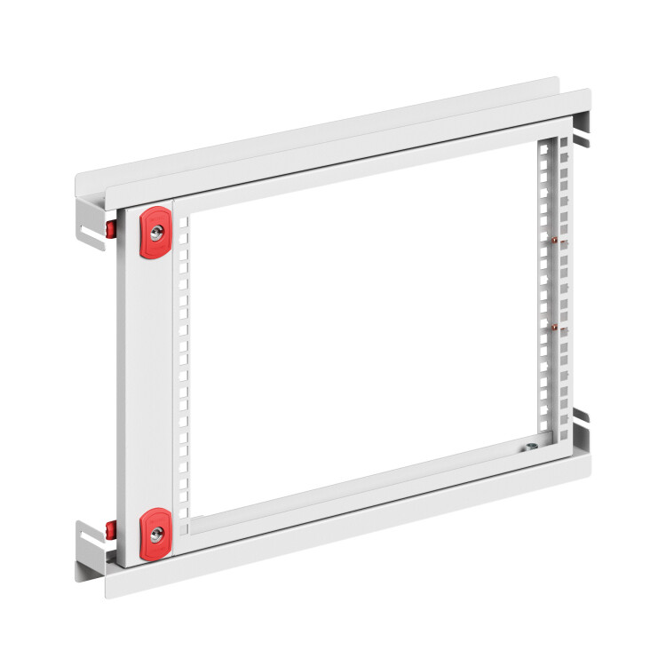 Рама поворотная 7U для установки 19" оборудования для корпусов ST/STX/STE/STEX/STH изготавливается из стали толщиной 1,5 мм с атмосферостойким порошковым покрытием, цвет RAL7035. Материал личинки замка, ригеля, петель – металл. кг, максимальный угол открытия – 105°. Габариты рамы: 400x600 (ВхШ) мм.