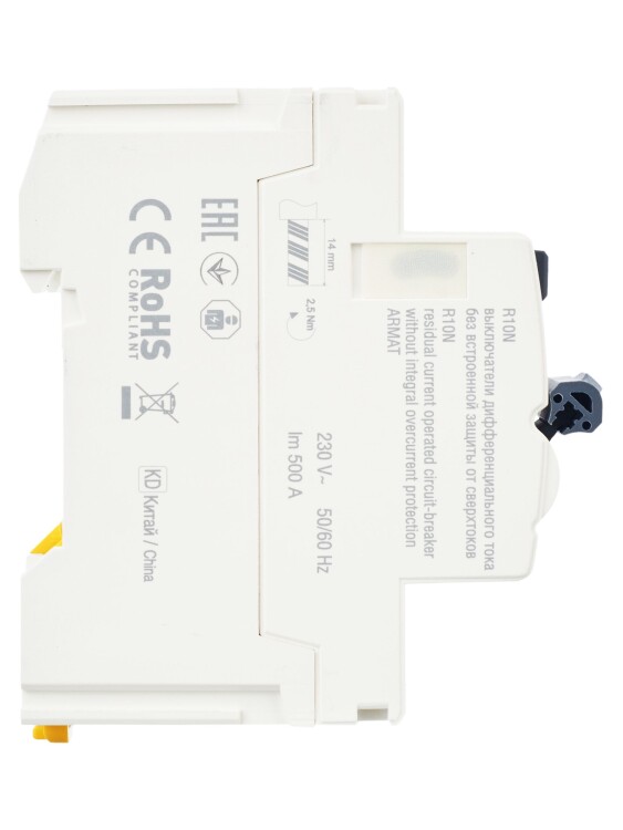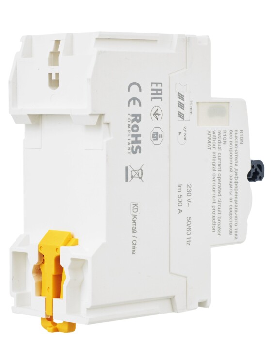 Выключатели дифференциального тока ARMAT серии R10N выполняют функцию защиты поражения человека электрическим током, а так же защиты от пожара при возникновении замыкания на землю. Модельный ряд включает в себя устройства с типами защитных характеристик по дифференциальному току AC, A, AC-S, A-S; номинальными токами от 25 до 100 А; номинальными дифференциальными токами срабатывания от 10 до 300мА. Условная отключающая способность ВДТ ARMAT серии R10N составляет 10 кА.