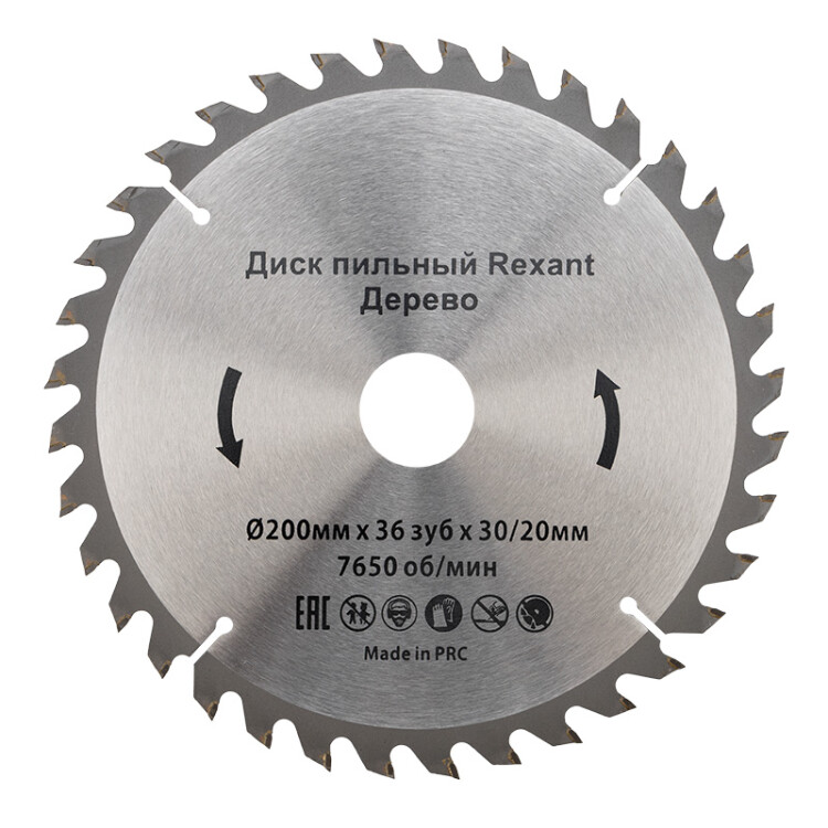 Диск с твердосплавными напайками предназначен для пиления древесины, пластика, ДСП, МДФ. Используется совместно с дисковыми (торцовочными или циркулярными) пилами. Скорость вращения - 7650 об/ мин.