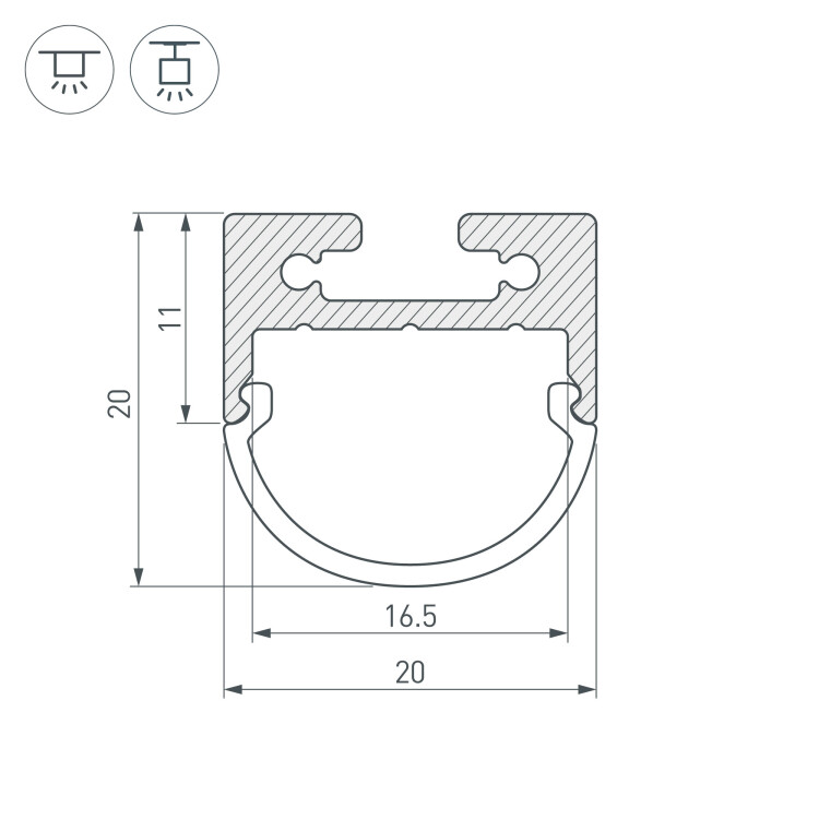 Комплект с экраном и заглушками (2 шт.). Алюминиевый профиль для светодиодных лент и линеек. Цвет - черный RAL9005 (порошковая окраска). Габаритные размеры профиля (L×W×H): 2500x20x11 мм. Габаритные размеры профиля с экраном (L×W×H): 2500x20x20 мм. Ширина площадки для ленты 16,5 мм. Аксессуары приобретаются отдельно.