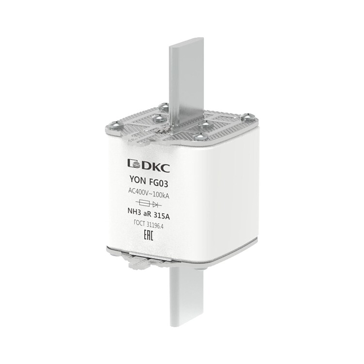 Предохранитель YON ножевого типа FG3 с одинарной индикацией 315А предназначен для защиты полупроводников и электронных компонентов электроустановки от короткого замыкания в цепях переменного тока напряжением до 400В (характеристика aR).
