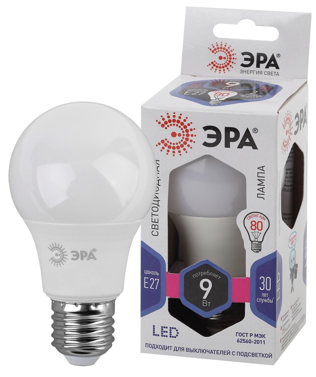 Лампочка светодиодная ЭРА STD LED A60-9W-860-E27 E27 / Е27 9Вт груша холодный дневной свет (кр. 1шт)