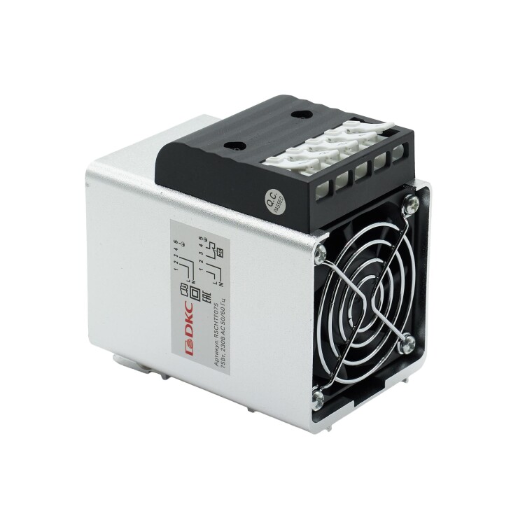 Компактный обогреватель с вентилятором мощностью 150 Вт предназначен для поддержания необходимой температуры внутри электротехнического шкафа. Питающее напряжение – 230 В с частотой 50/60 Гц. Обогреватель изготовлен из высококачественных материалов, обеспечивающих надежную работу. Степень защиты – IP20. Благодаря компактным размерам 61x93x95 мм этот обогреватель легко устанавливается в ограниченном пространстве. Рабочий диапазон температур от –45 до +70 ˚C делает его подходящим для использования в суровых условиях эксплуатации. Обогреватель оснащен резистивным нагревательным элементом, что обеспечивает стабильную и долговечную работу.