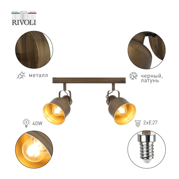 Спот накладной Rivoli Inessa изготовлен из металла эффектного цвета темной античной бронзы. Плафон отлично направляет световой поток. Дизайнерские настенно-потолочные светильники Inessa (арт. 7036-702) применяются с 2 лампами Е27 мощностью 40 Вт. Они освещают площадь 6 м². Споты потолочные Inessa подходят для стилей лофт, модерн, кантри, скандинавский.