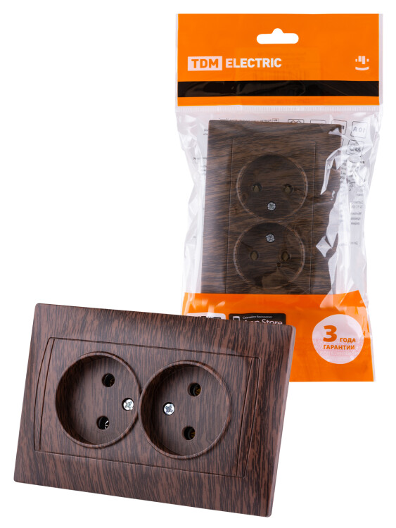 Розетка двойная 2П 10А 250В венге "Лама" TDM (кр.7шт)