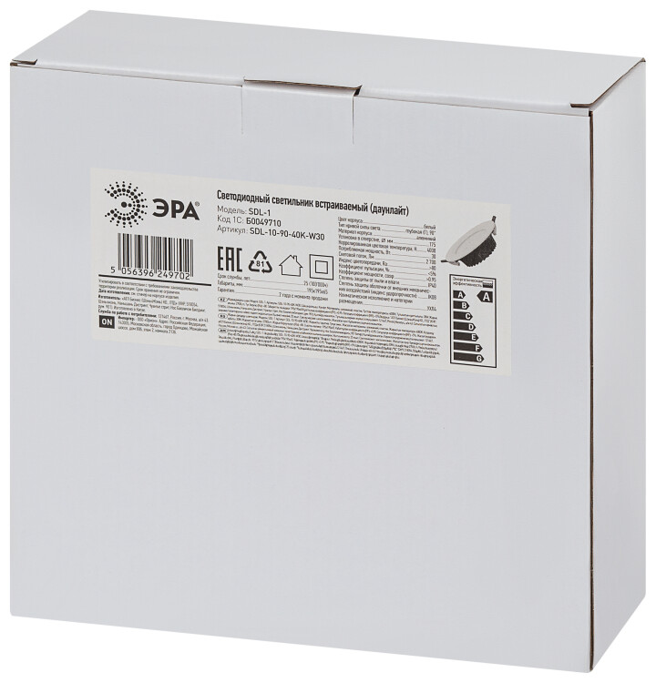 ЭРА SDL - встраиваемый светодиодный светильник формата даунлайт. Оптимальное решение в качестве замены люминесцентных даунлайтов для торговых, офисных и общественных пространств. Коэффициент передачи >80 в совокупности с коэффициентом пульсации 90 Лм/Вт обеспечивает высокую энергоэффективность и экономичность светильников. Встраиваемые LED-светильники с глубокой кривой силы света (КСС «Г»). Доступны к заказу в 2 вариантах цветовой температуры: нейтральный белый свет 4000 К и тёплый белый свет 3000 К. Варианты мощности: 20Вт, 25Вт, 30Вт и 35Вт. Надёжный алюминиевый корпус.