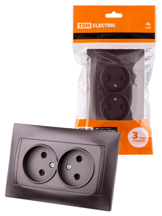 Розетка двойная 2П 10А 250В шоколад "Лама" TDM (кр.7шт)