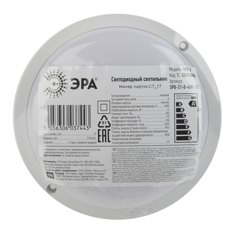 Светодиодный светильник пылевлагозащищенный IP65, мощностью 12Вт, световым потоком 960Лм. Подходит для освещения блока ЖКХ, гаражей, балконов, а так же других помещений с повышенной влажностью.