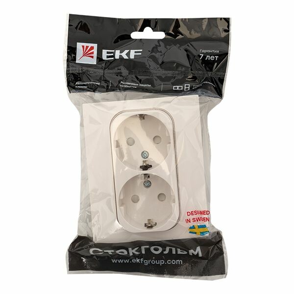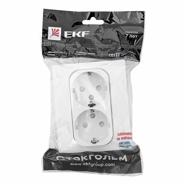 Розетка двухместная EKF серии Стокгольм с заземлением и со шторками станет отличным решением для стильного помещения при подключении устройств. Шторки открываются при одновременном давлении в оба отверстия и препятствуют проникновению посторонних предметов, обеспечивая дополнительную безопасность. Выполнена из поликарбоната, устойчивого к ультрафиолетовому излу чению. Автоматические самозажимные клеммы упрощают и ускоряют монтаж изделия.