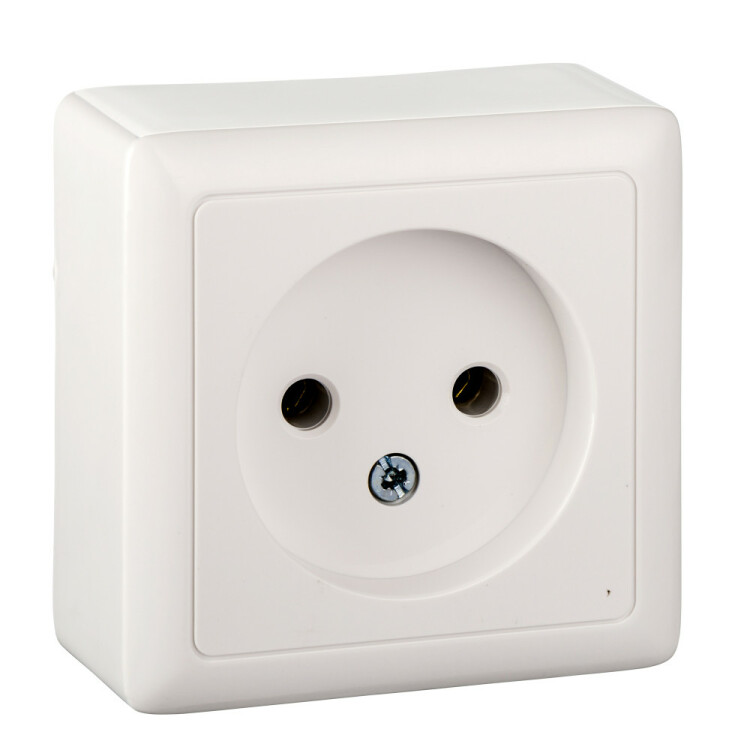 Розетка Systeme Electric (ранее Schneider Electric) ХИТ (открытой установки, цвет белый) без заземления, без шторок, с изолирующей пластиковой пластиной предназначена для сетей до 250 В на ток до 10 А. Розетка изготовлена из ABS-пластика, проста в установке, прочна и надежна в применении. Оптимальное соотношение цены и качества. Сделано в России.