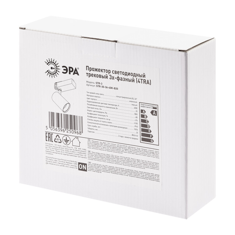Трековый светильник трехфазный ЭРА SТR-30-36-40K-B20 узкий луч 4000K черный (кр. 1шт)