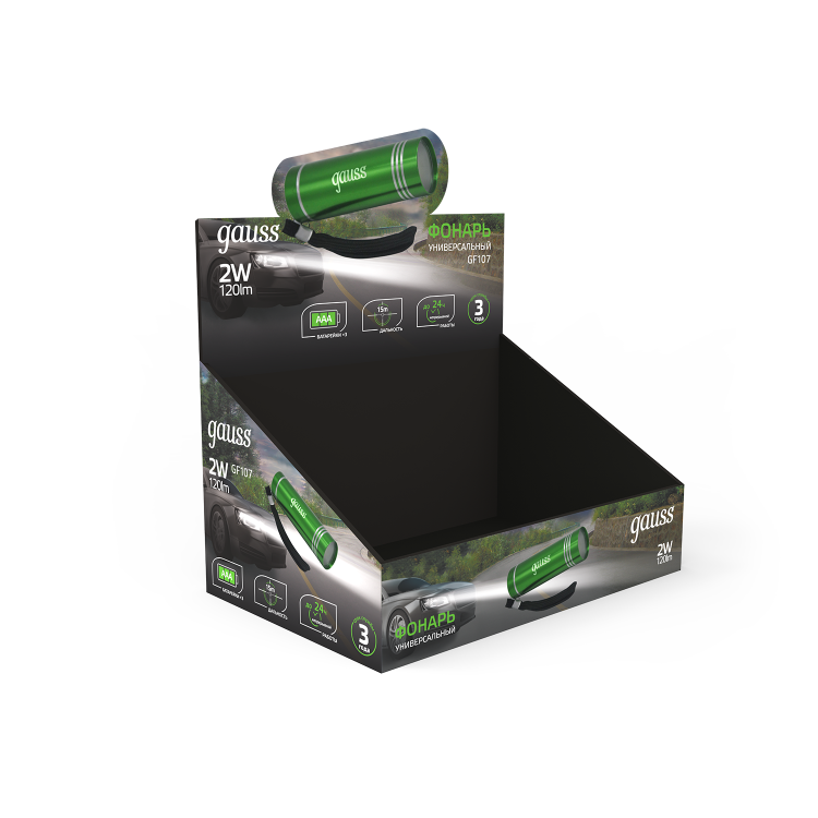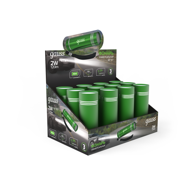 Фонарь ручной Gauss модель GFL107 ультракомпактный карманный фонарь с мощными осветительными функциями. Миниатюрный размер и стильный дизайн позволяют фонарику дополнить содержимое дамской сумочки или мужского сумки-слинга как полезный и не занимающий много места аксессуар. Инновационные СОВ LED светодиоды дают 120лм яркого света и длину светового луча 15м. Фонарик работает от 3 минипальчиковых батареек, продолжительность работы 24ч до смены батареек. Набор из 12 фонарей в комплекте - это готовое решение для предкассовой зоны, туристической группы и/или полезных подарочных сувениров.