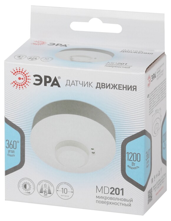 MD 201 Датчик движения ЭРА микроволновый белый, 1200Вт, 360 гр.,8М,IP20, (50/1400)(кр.1шт)