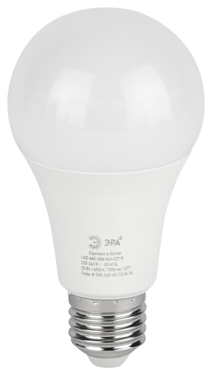 Лампочка светодиодная ЭРА RED LINE LED A65-25W-840-E27 R Е27 / E27 25 Вт груша нейтральный белый свет (кр. 1шт)