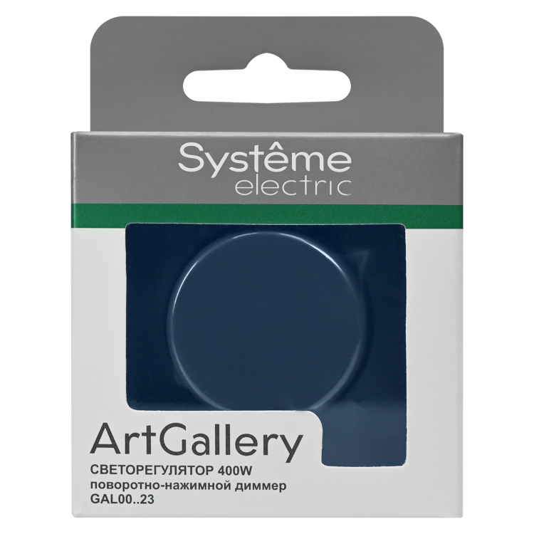 Механизм светорегулятора Systeme Electric серии ArtGallery в цвете аквамарин поворотно-нажимной для нагрузки мощностью до 400 Вт, подходит для LED ламп.