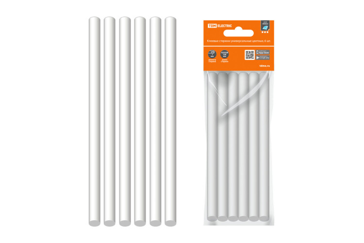 Клеевые стержни универсальные белые, 11 мм x 100 мм, 6 шт, "Алмаз" TDM (кр.1упак)